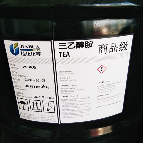 【物化性質(zhì)】熔點21.2℃,沸點360.0℃,227℃(20kPa),相對密度(20/4℃)1.1242,動力粘度(25℃)613.3mPa?s,折射率(nD20)1.4852,閃點193℃。三乙醇胺能與水、甲醇和丙酮混溶。在25℃時的溶解度為:苯4.2%,乙醚1.6%,四氯化碳0.4%,正庚烷小于0.1%。微有氨的氣味,極易吸潮,三乙醇胺能吸收空氣中二氧化碳,露置空氣中以及在光線下變成棕色